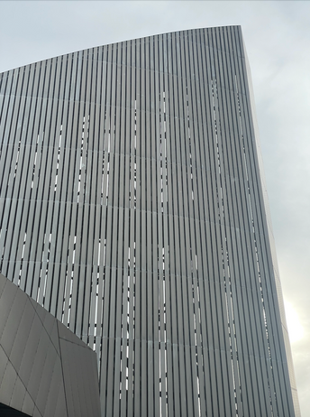 I went to Salford Quays and took pictures of buildings which stood out and which have intricate designs. For example, different colour glass windows, reflective bronze tiles, which looks like metal and different shaped buildings.